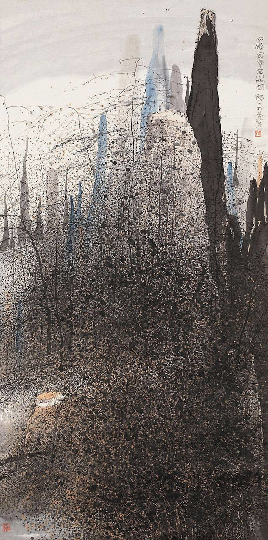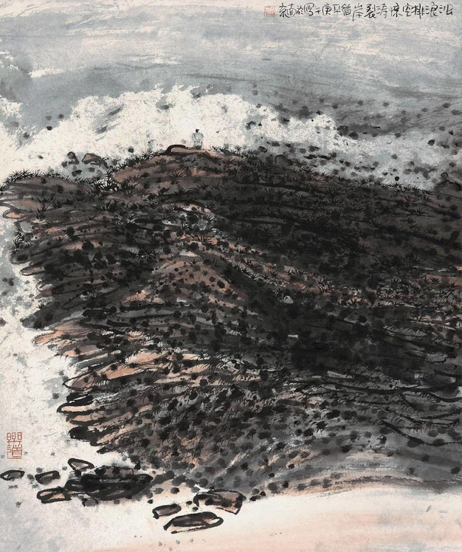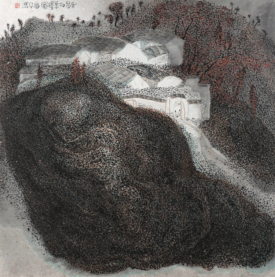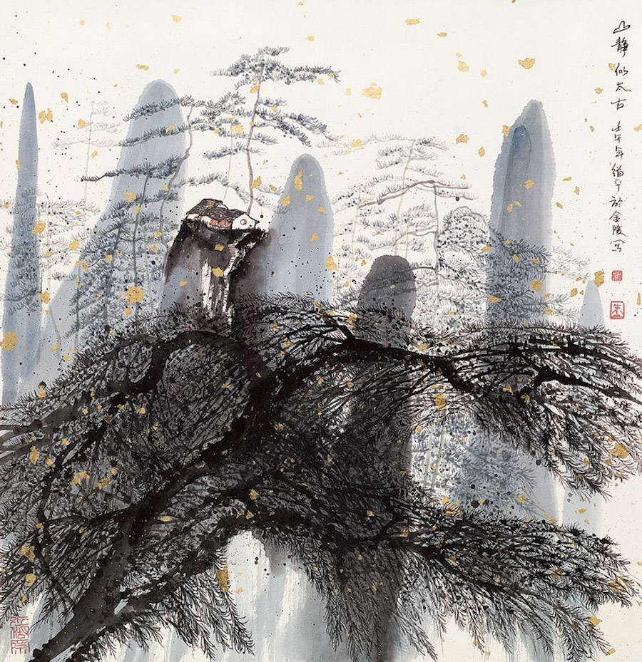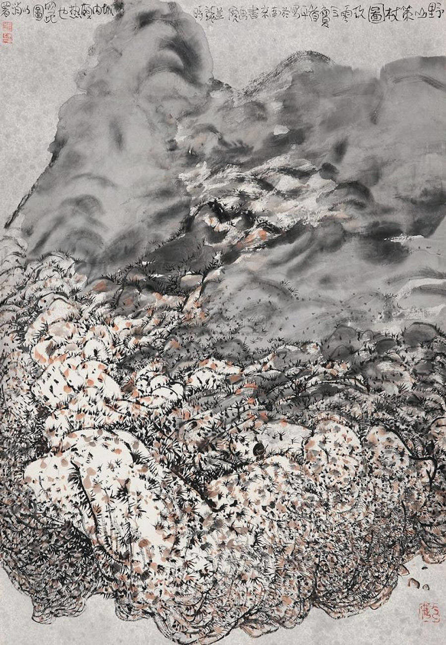 中国艺术家Zhu Daoping擅长绘制山水,他所创造的山区景观似乎被剥除了人的存在。画家使用印象派常用的点彩画技巧与简单的线条,重塑了中国的传统山水画面。
