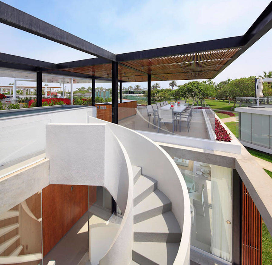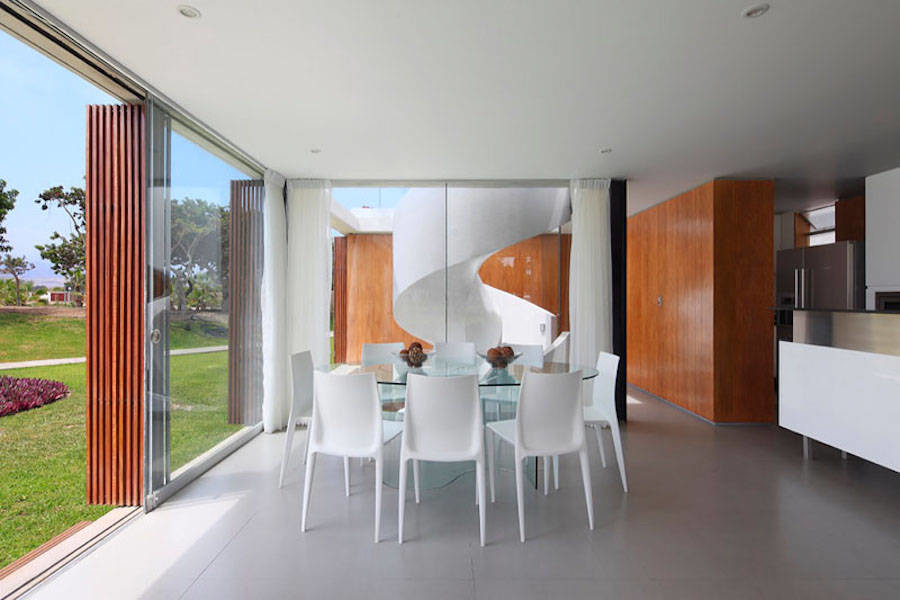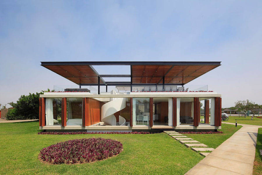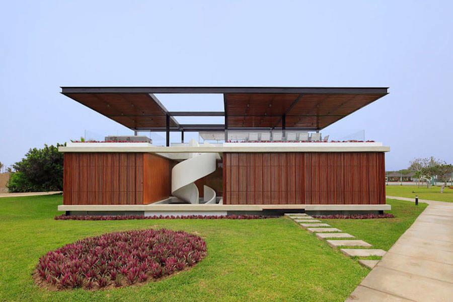 建筑师Jorge Marsino Prado在秘鲁展示了他的新一代建筑计划。这栋方形建筑主要由木板材和巨大开口的窗户构成。房屋拥有很棒的螺旋式楼梯通向优雅的屋顶。简明的现代建筑因引入巨大曲线螺旋得获得了活力。