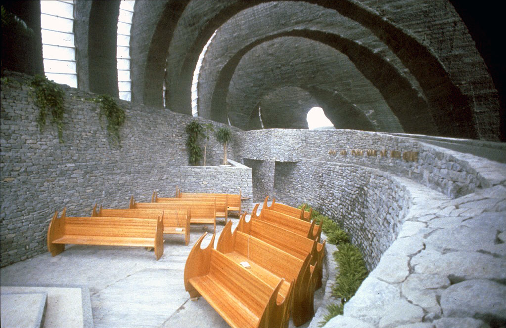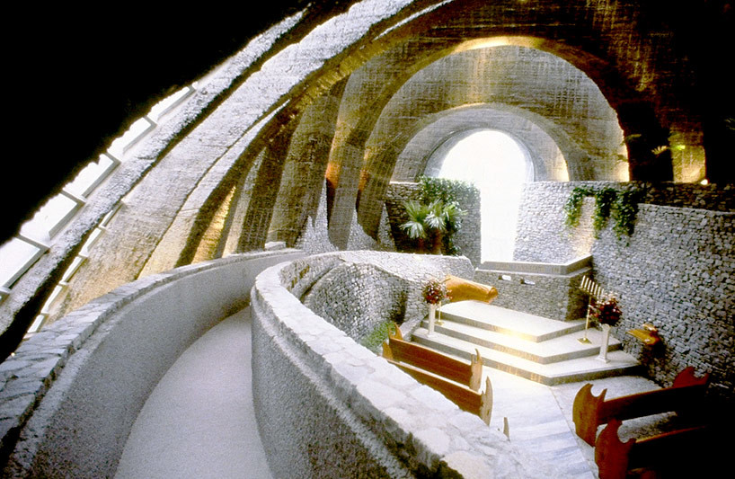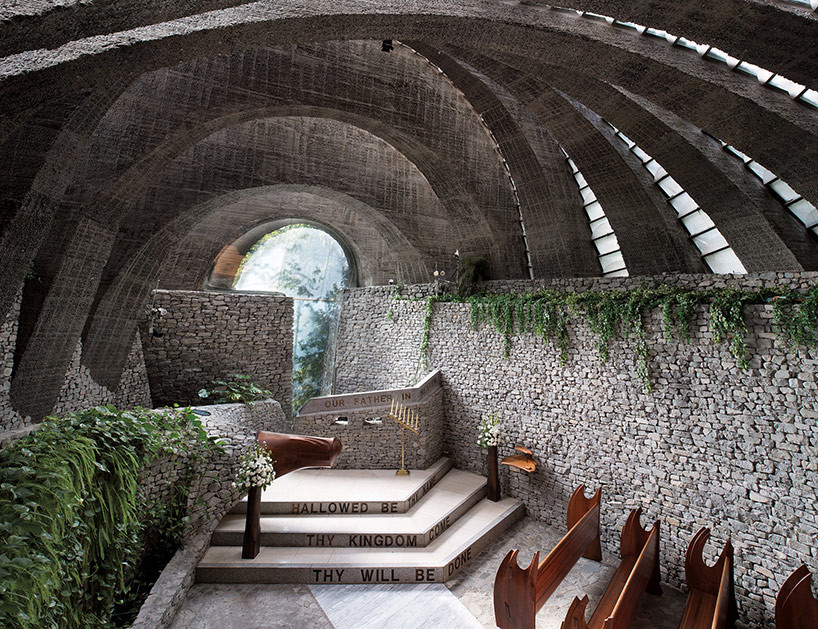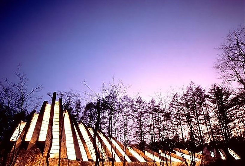 日本长野市,建筑师肯德里克·凯洛格(Kendlog Kellogg)创建了一处独一无二的教堂。许多装配着玻璃板的约柜形状的单元组成了建筑物的穹顶。设计师以这种结构表现建筑的轻盈感和圣光的温暖。