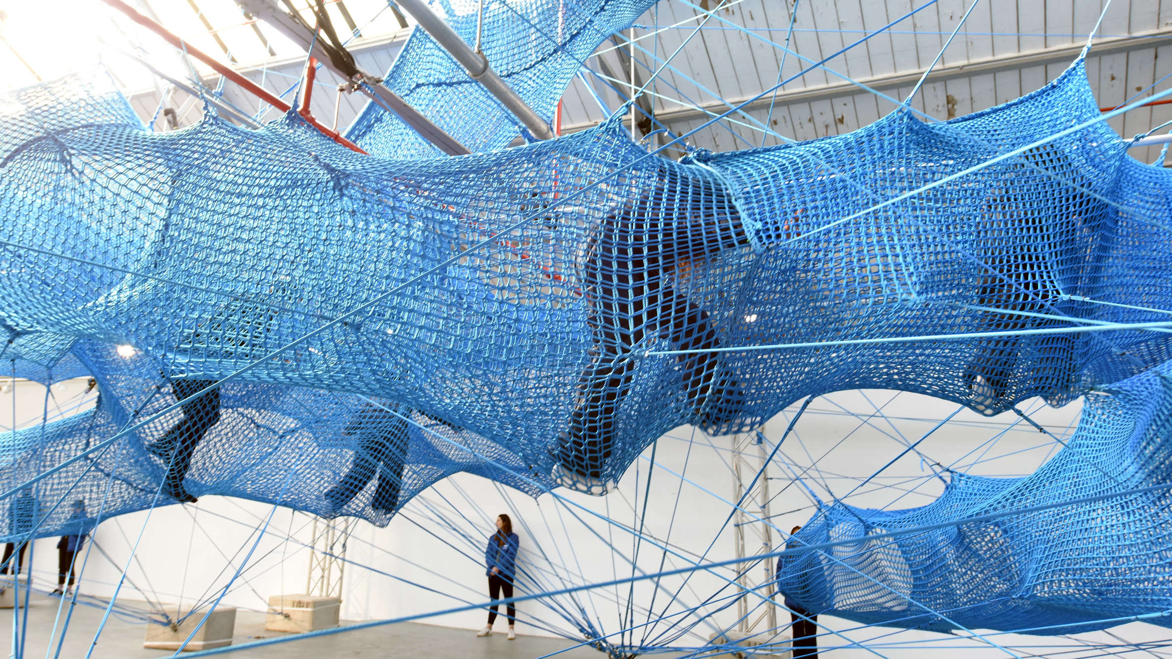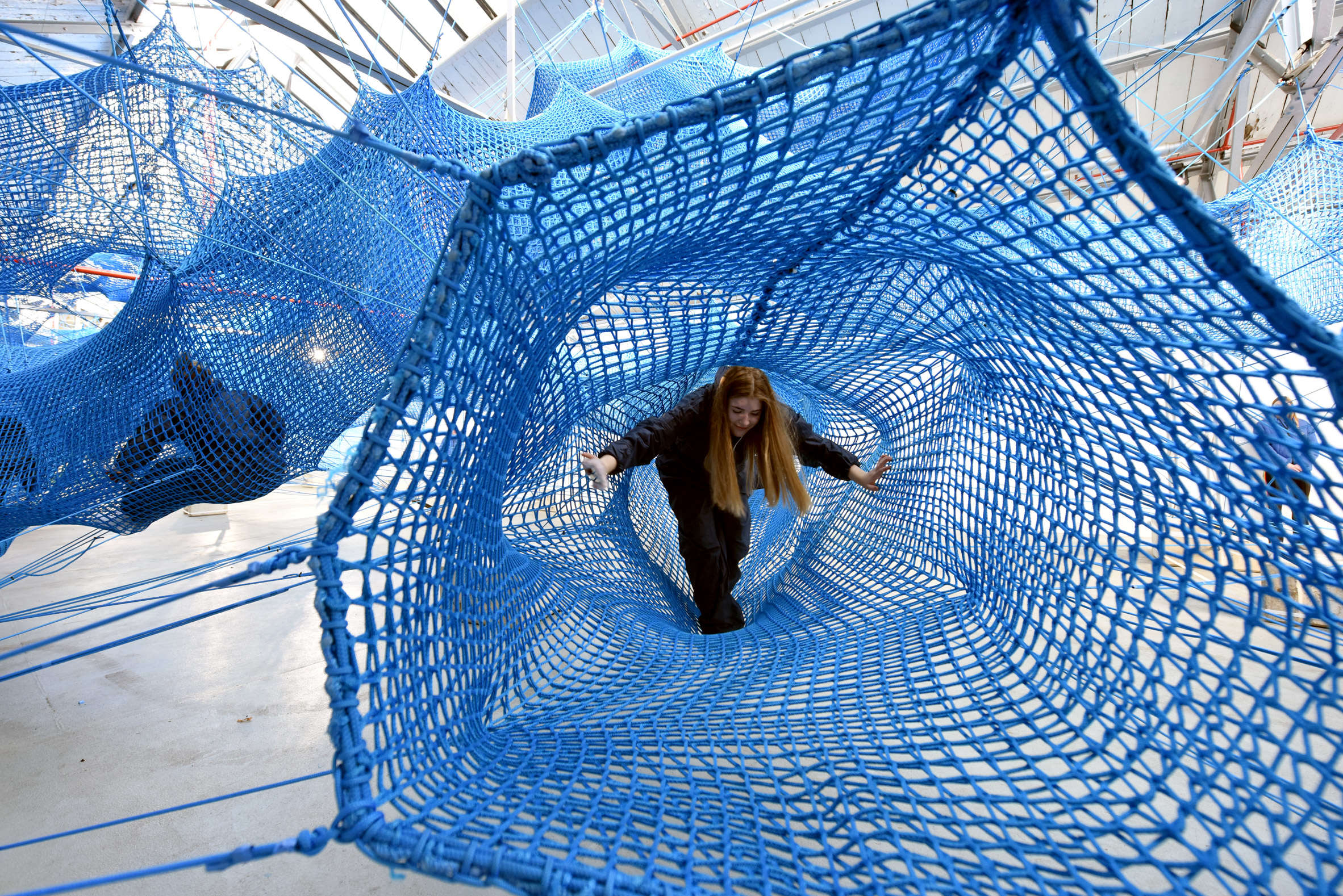 英国时装设计师Anya Hindmarch最近与Numen / For Use Design Collective合作完成了一个项目,作为伦敦时装周的一部分。在布鲁尔街停车场布置名为“编织”的项目是个沉浸式艺术装置,游客可以在其中攀爬和漫游,名为“The Tube”。这个精巧的临时装置,主要由绳索制成,希望唤起游客的童年记忆,同时游客可从任何视角重新发现这个装置。