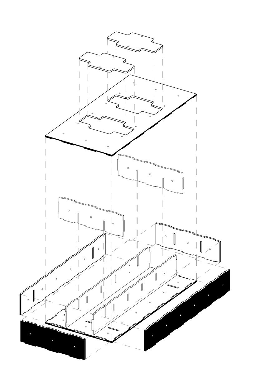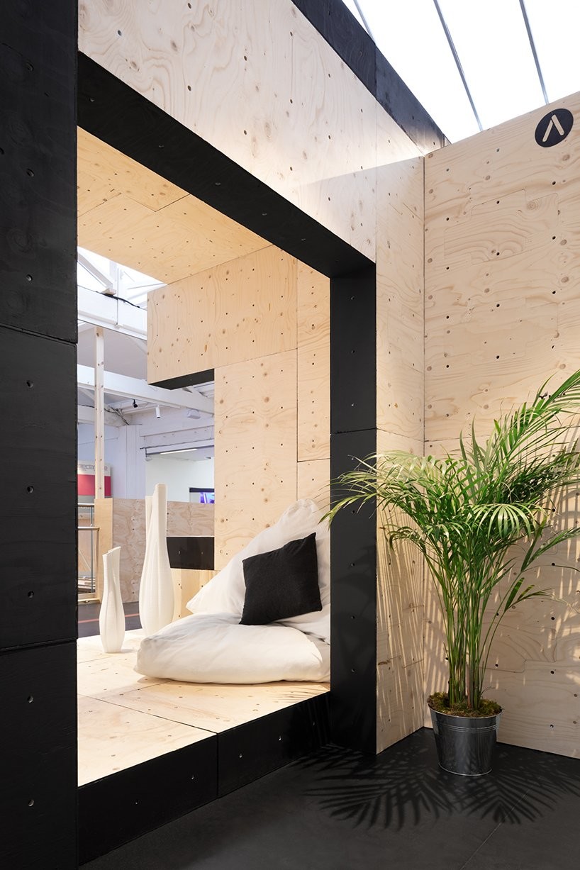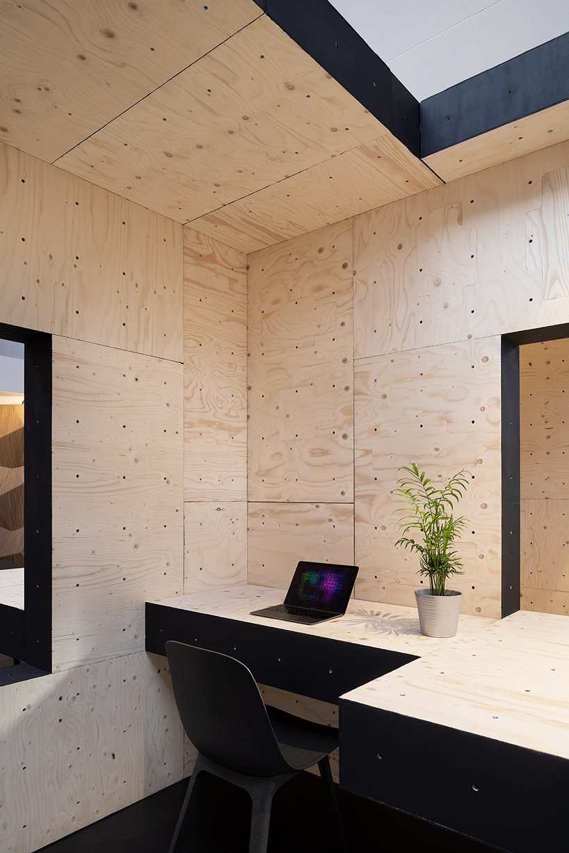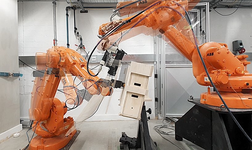 英国自动化建筑设计咨询公司AUAR,在伦敦一家室内商业步行街打造了一间集工作和休憩功能于一体的临时办公室,而搭建这间小屋的,全部都是机器人。能够实现这一工程,得益于AUAR设计开发的预制胶合板组件——“ALIS”,automated living system(自动化居住系统)。这套系统不仅能够配合机器人程序迅速准确完成搭建,还能重复利用,满足各种功能需要。从命名可以看出,AURA更大的野心是用这套系统搭建可以居住的临时房屋。