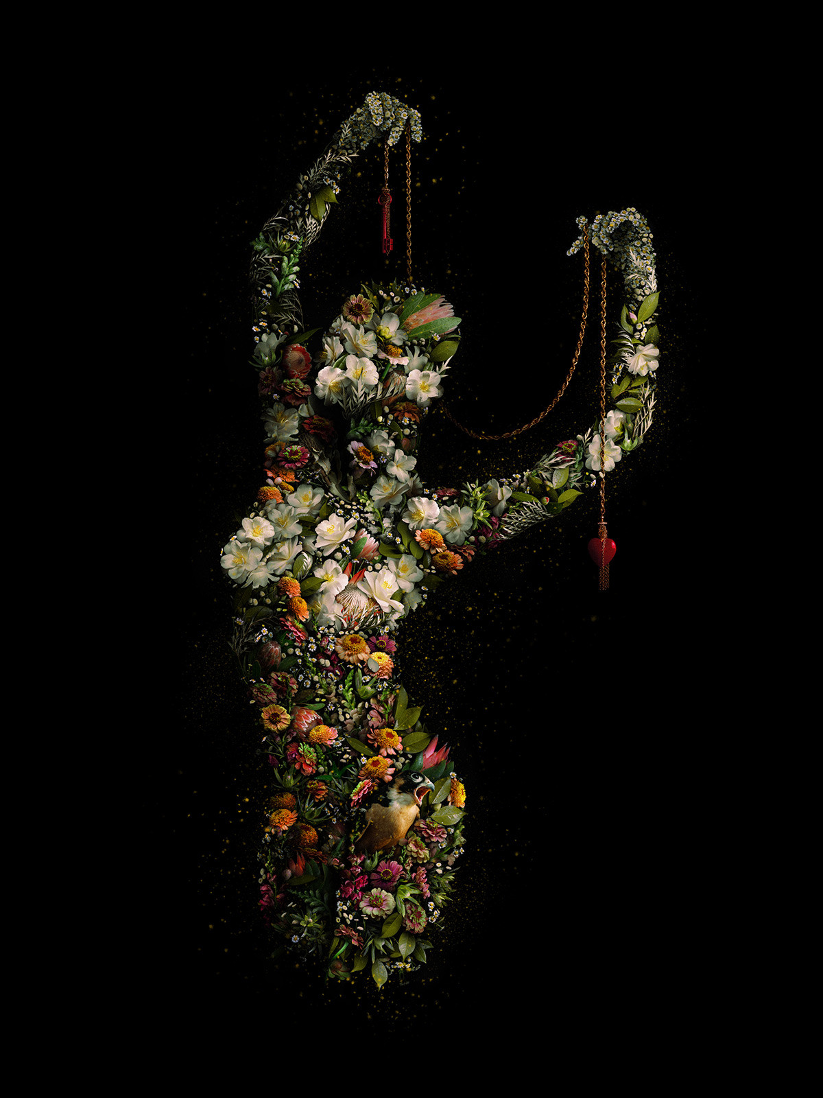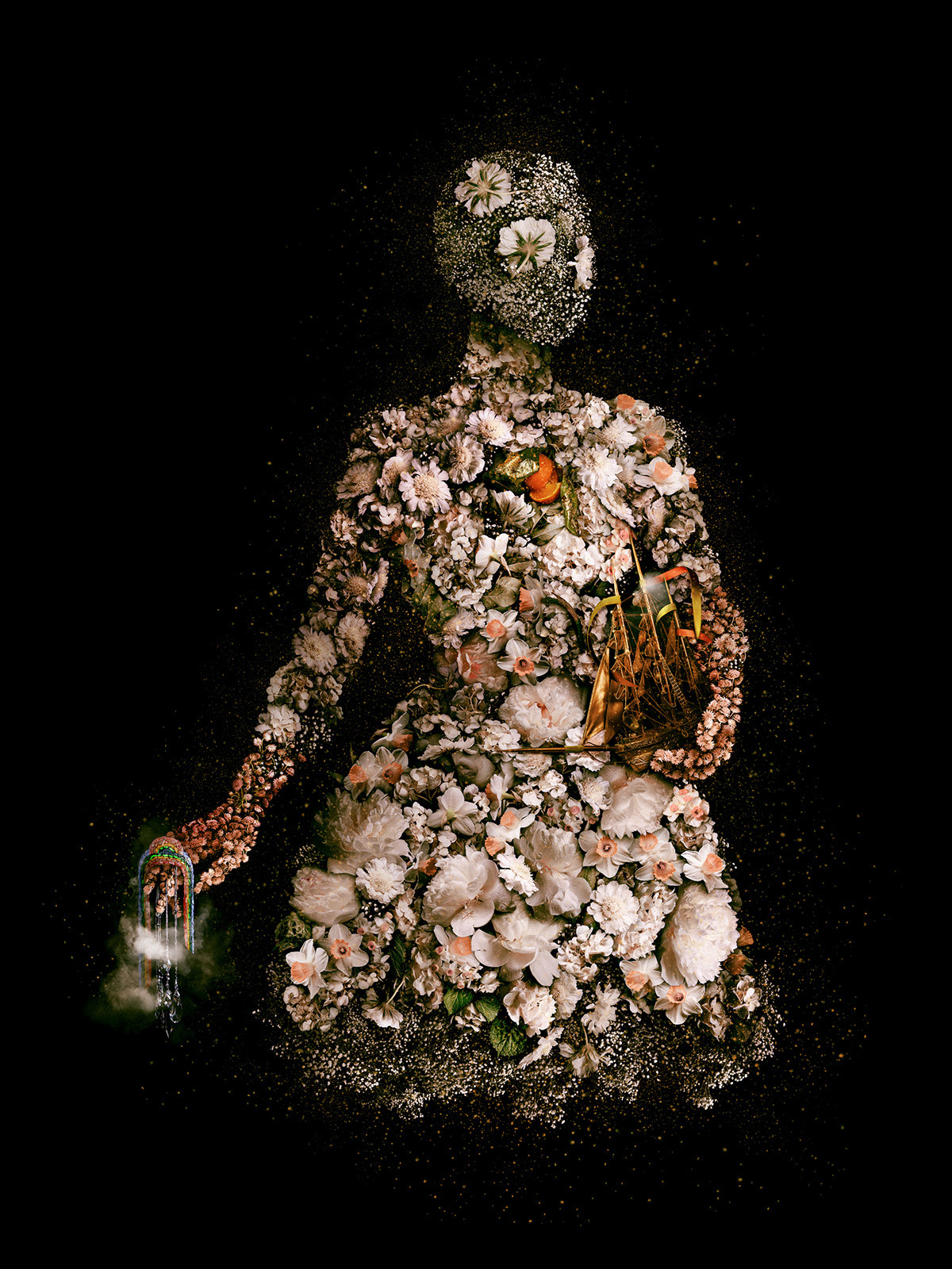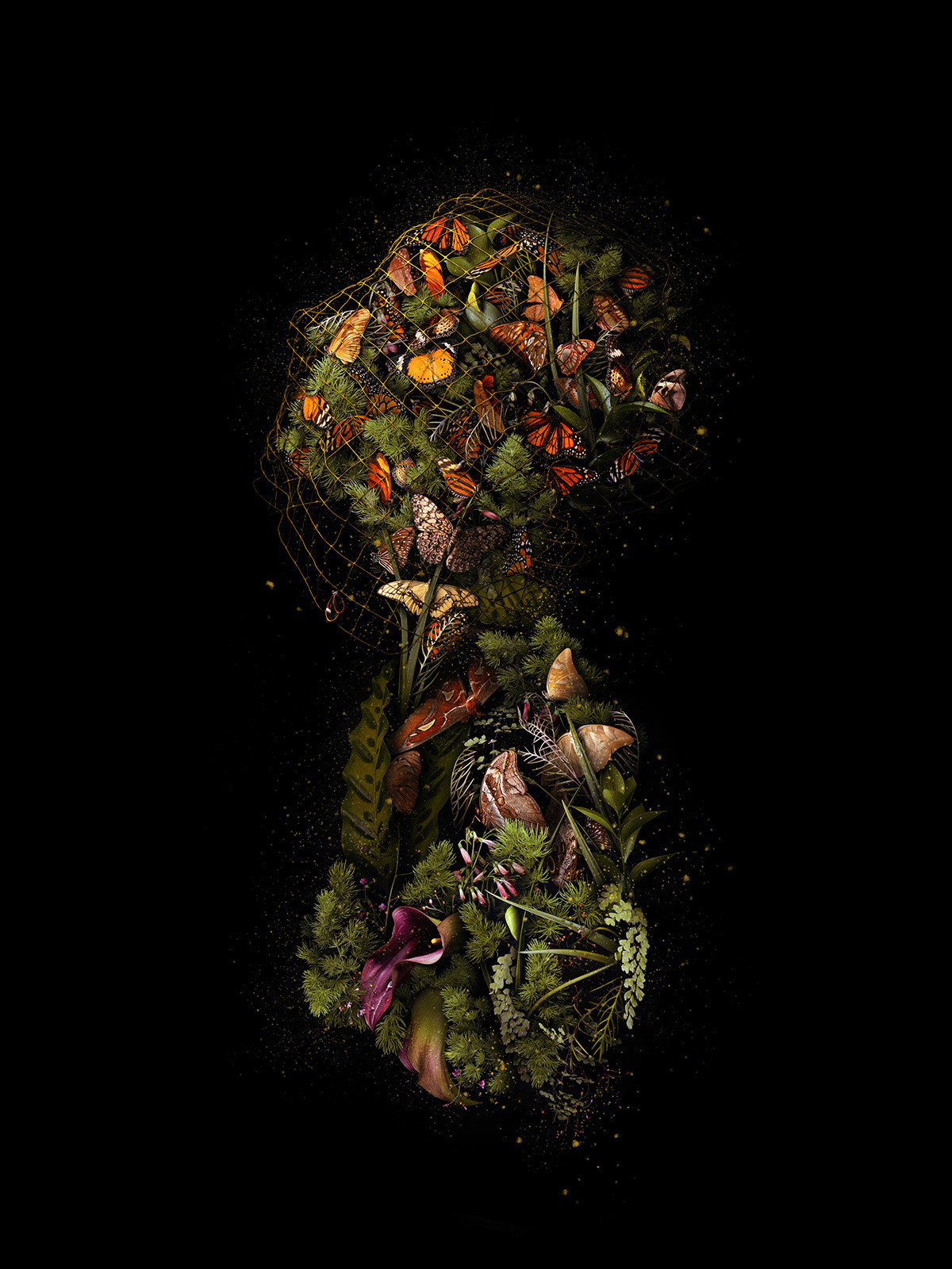 居住在西雅图的艺术家Meggan Joy以鲜花等植物部分打造她的数码艺术作品。她的工作过程十分繁琐,因为所有素材都来自她自己的花园,除了亲手栽种的花草,有时还有路过的蝴蝶甚至鸟类。将这些素材单独拍摄后,Joy在电脑上拼贴出各种女性人体造型——“每一个女像都由曾经鲜活的另一种生命的影像构成,这赋予了她们一种空灵的气质。”