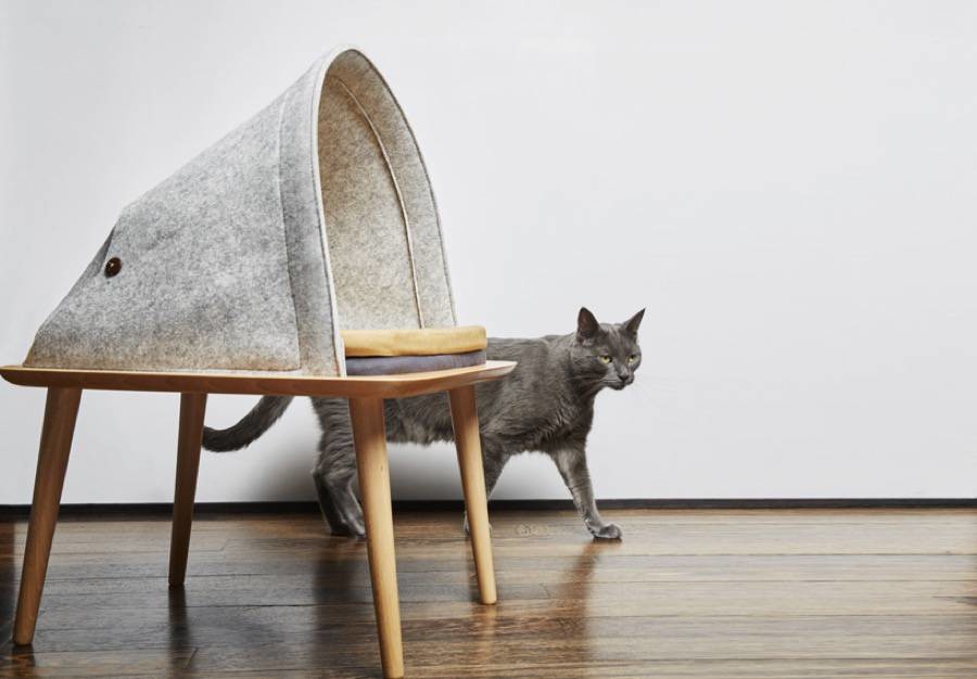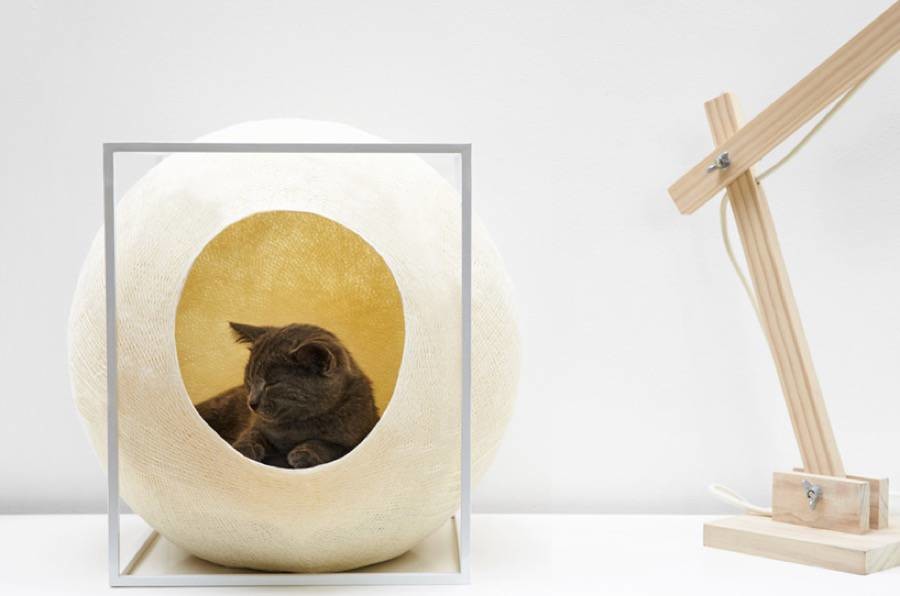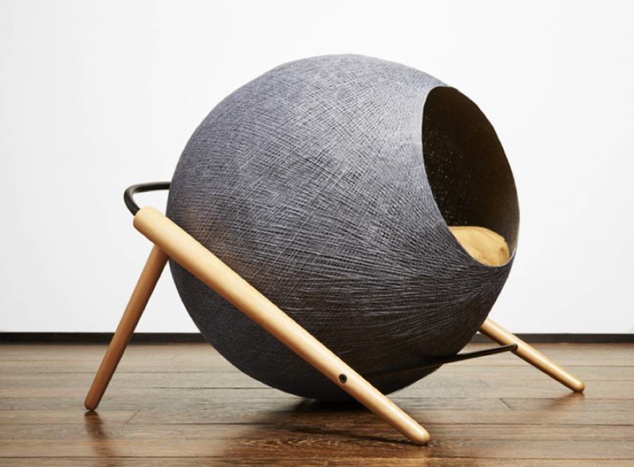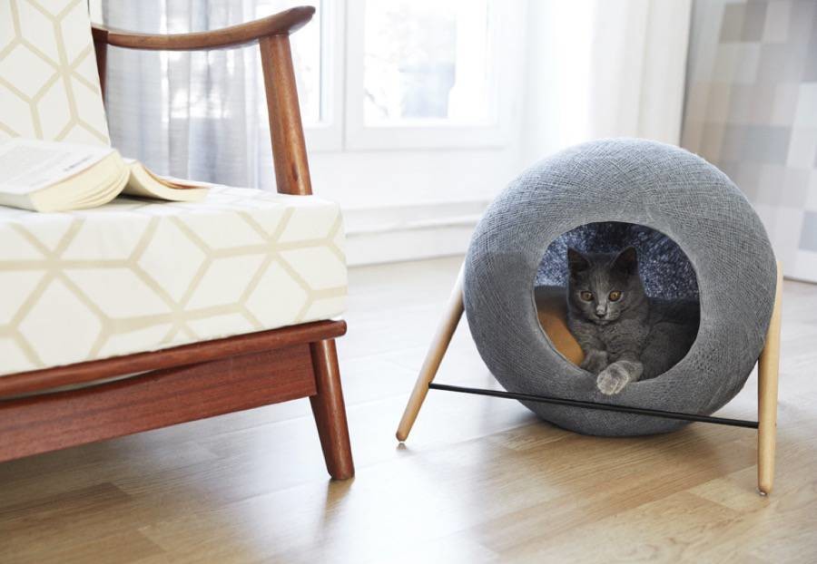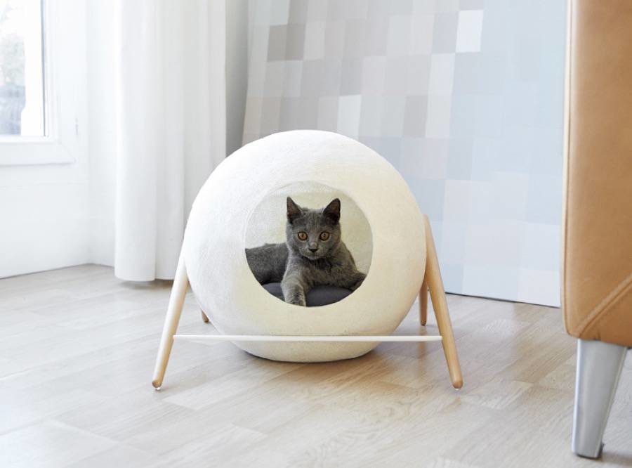 Aude Sanchez与Guillaume Gadenne这对定居巴黎的设计师为现代房屋内饰设计了一套气质相符的猫床,名为Meyou。使用木材和羊毛编织成小小茧状猫房不仅给爱猫提供舒适的躺卧环境,它也会是房屋中央一大亮点呢。