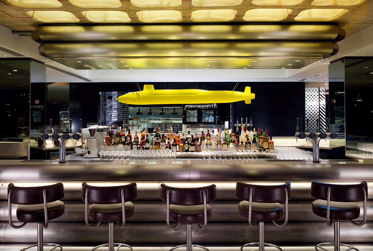 伦敦 Mondrian 酒店内 Sea Containers 餐厅的吧台。